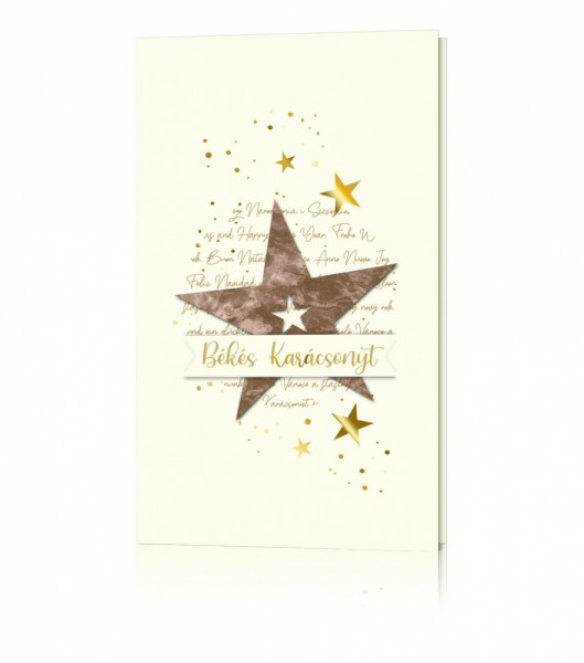 Kinyitható krém karácsonyi képeslap lézerrel vágott barna csillag dísz kiegészítővel, amely kivehető.